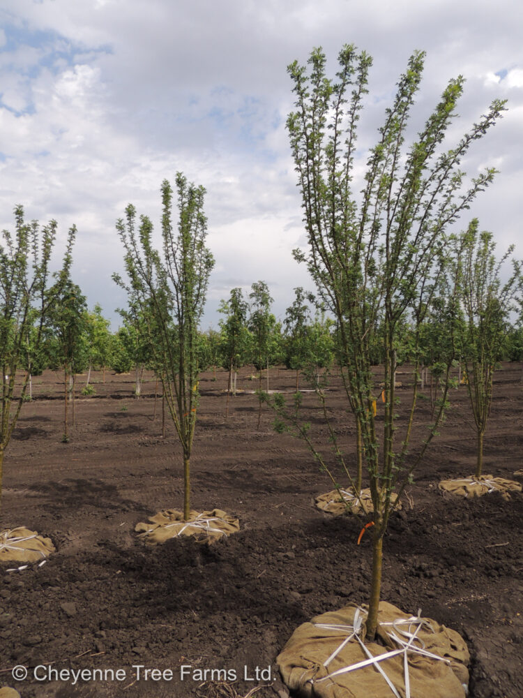 A narrow multi-stemmed tree with an upright growth habit. Yellow flowers in June. Dark green leaves. Can be single or multi stem. Bright yellow fall color.